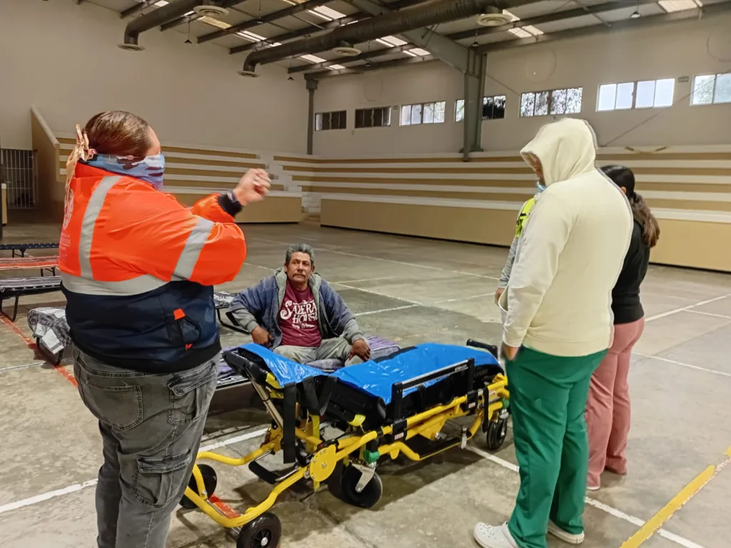 En el refugio se cuenta con personal médico y de asistencia social del Sistema DIF, así como brigadas de Protección Civil y Bomberos, para atender a las personas que arriben al auditorio. A quienes ya han sido trasladados se les proporciona alimento caliente, cobijas y atención médica básica, priorizando la salud y el bienestar de cada persona atendida.​